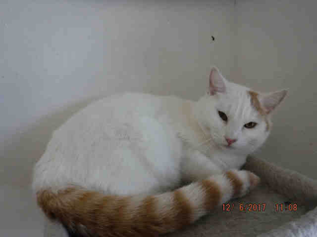 I am a neutered male, white and orange tabby Domestic Shorthair.