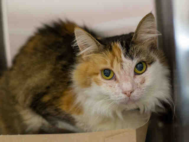 My name is Amelia and I am described as a spayed female, calico Domestic Mediumhair mix.