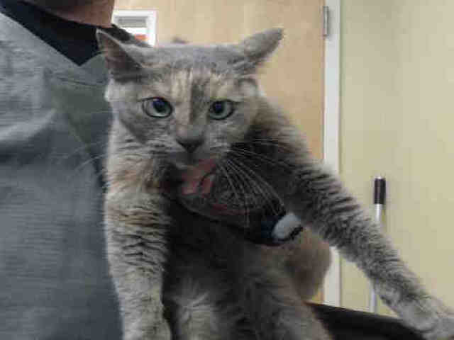 My name is Lolli and I am a spayed female, tortie (dilute) Domestic Shorthair.