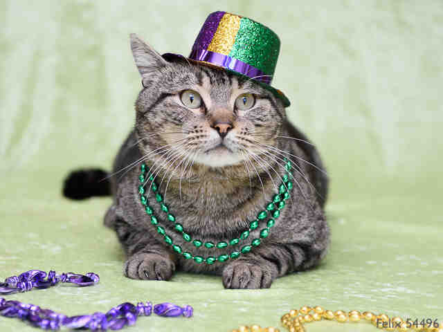 My name is Felix and I am a male, gray tabby Domestic Shorthair.
