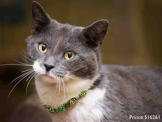My name is Prince and I am a neutered male, gray and white Domestic Shorthair.