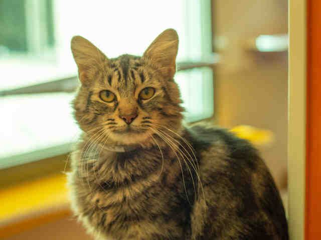 My name is Daryl and I am described as a neutered male, brown tiger Domestic Shorthair.