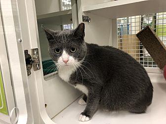 I am a spayed female, gray Domestic Shorthair.