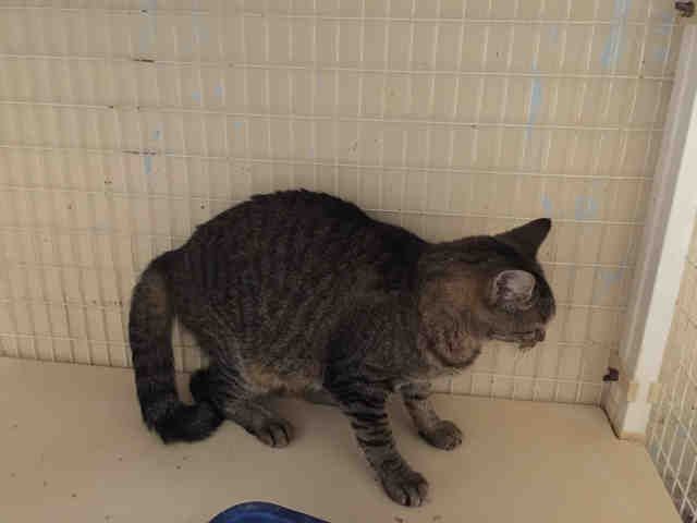 I am a spayed female, brown tabby Domestic Shorthair.