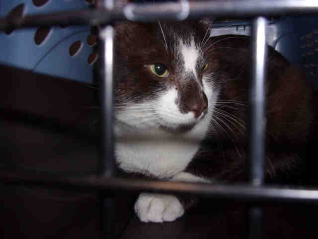 My name is Holmes and I am a male, chocolate and white Domestic Shorthair