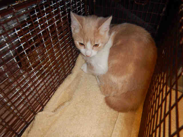 I am a neutered male, tabby-org and white Domestic Shorthair.