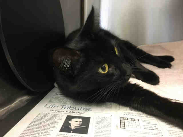 I am a spayed female, black domestic shorthair.