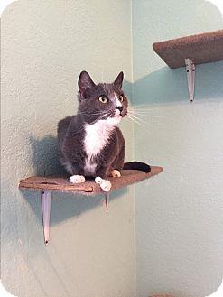 I am a spayed female, gray Domestic Shorthair.