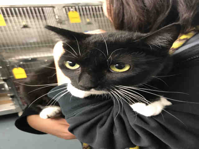 I am a male, black and white Domestic Shorthair.